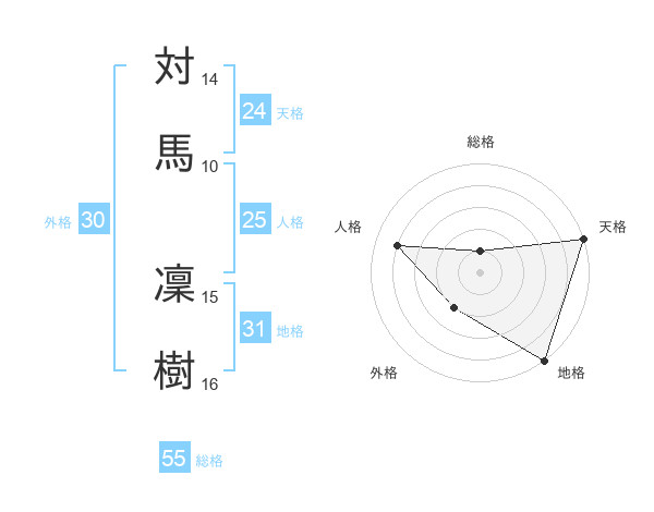 対馬 凜樹さんの天格は24画の5点!