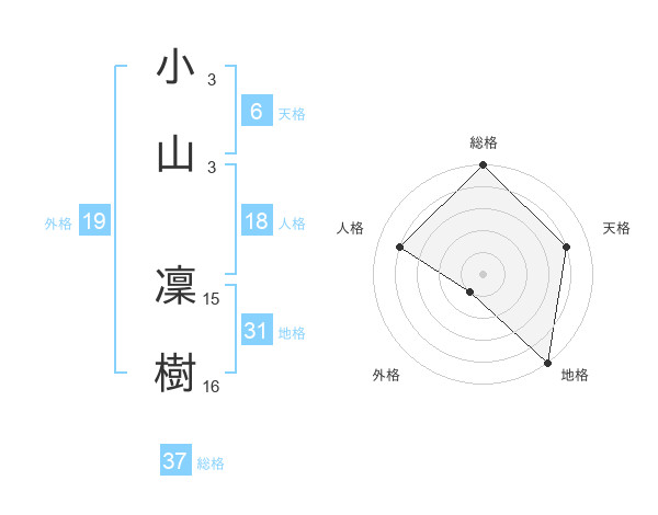 小山 凜樹さんの総格は37画の5点!