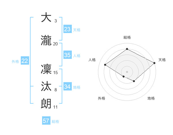 大瀧 凜汰朗さんを姓名の画数から五運を鑑定