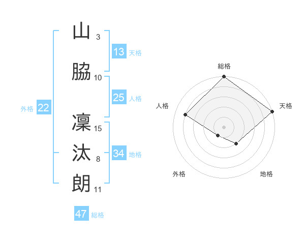 山脇 凜汰朗さんを姓名の画数から五運を鑑定