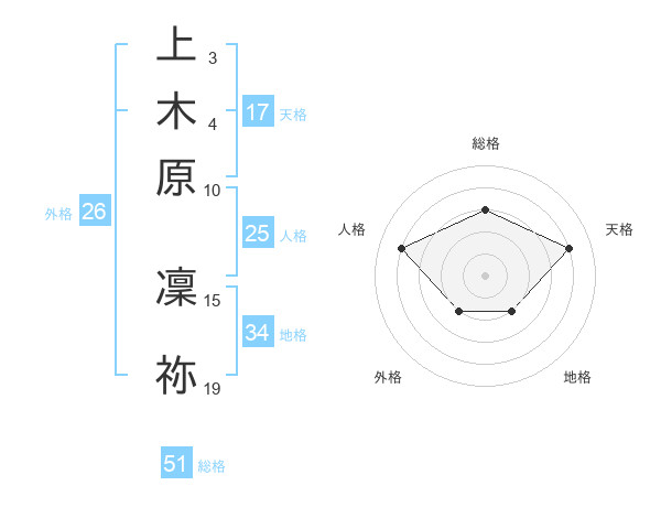 上木原 凜祢さんの天格は17画の4点!