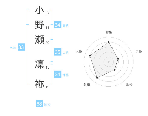 小野瀬 凜祢さんを姓名の画数から五運を鑑定