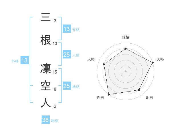 三根 凜空人さんの外格は13画の5点!