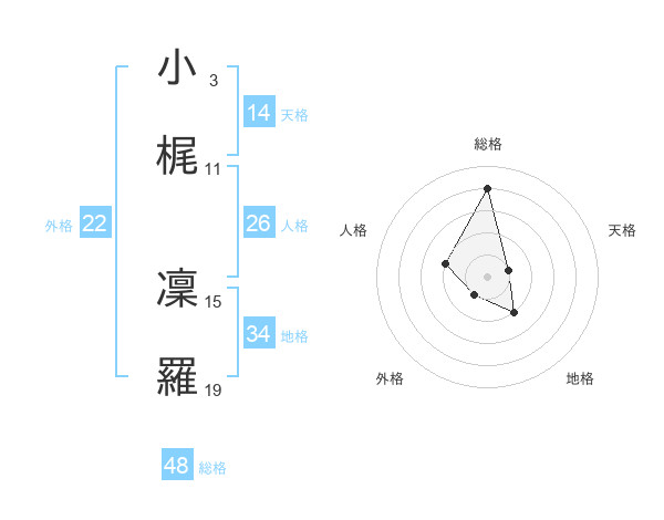 小梶 凜羅さんを姓名の画数から五運を鑑定