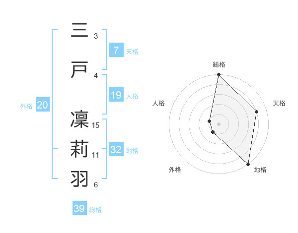 三戸 凜莉羽さんの総格は39画の5点