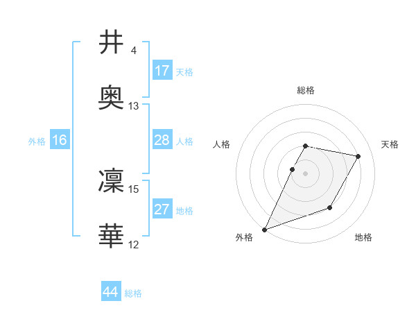 井奥 凜華さんを姓名の画数から五運を鑑定