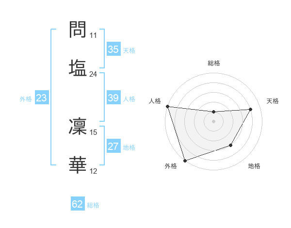 問塩 凜華さんの天格は35画の4点!