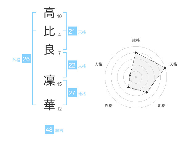 高比良 凜華さんを姓名の画数から五運を鑑定