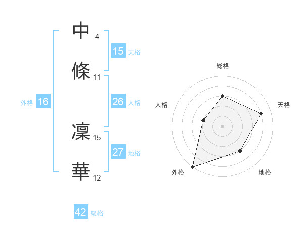 中條 凜華さんの外格は16画の5点!
