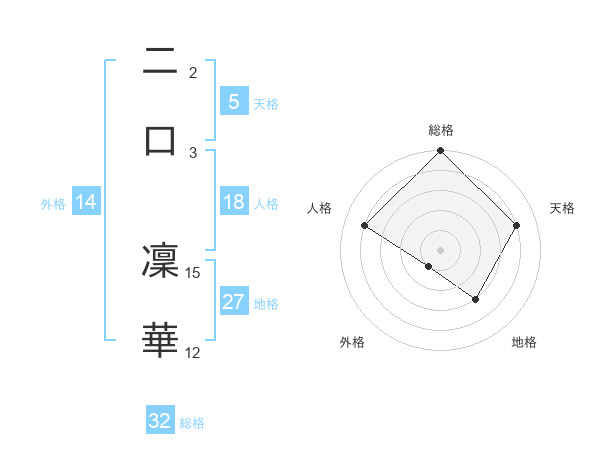 二口 凜華さんの総格は32画の5点!