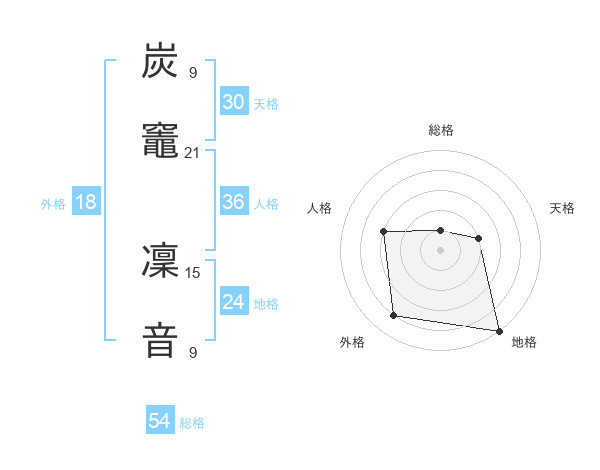 炭竈 凜音さんの総格は54画の1点!