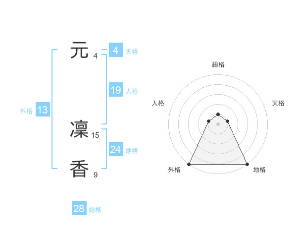 元 凜香さんの総格は28画の1点!