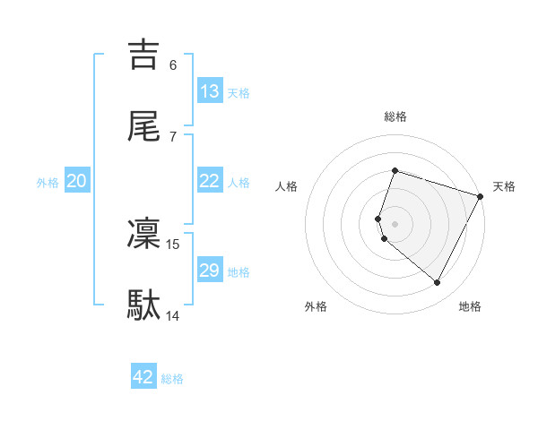 吉尾 凜駄さんの総格は42画の3点!