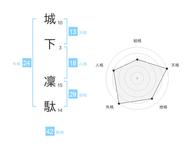 城下 凜駄さんを姓名の画数から五運を鑑定