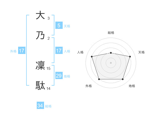 大乃 凜駄さんの総格は34画の2点!