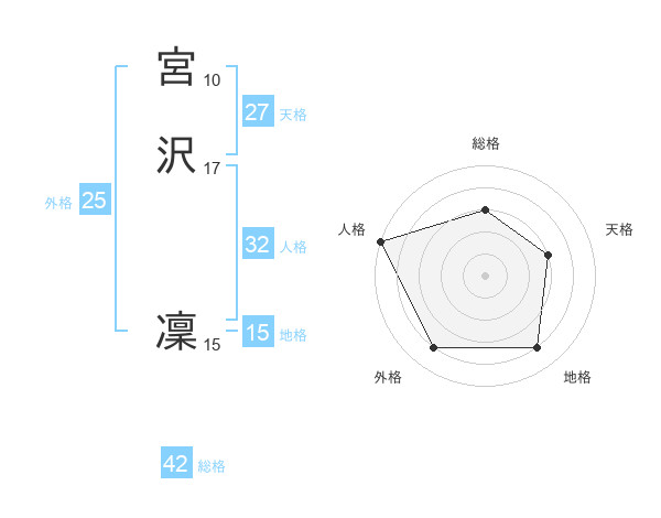 宮沢 凜さんの天格は27画の3点!
