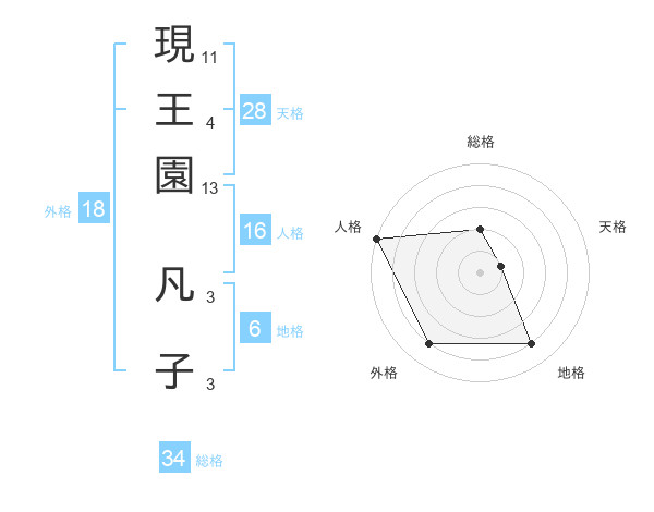 現王園 凡子さんの総格は34画の2点!