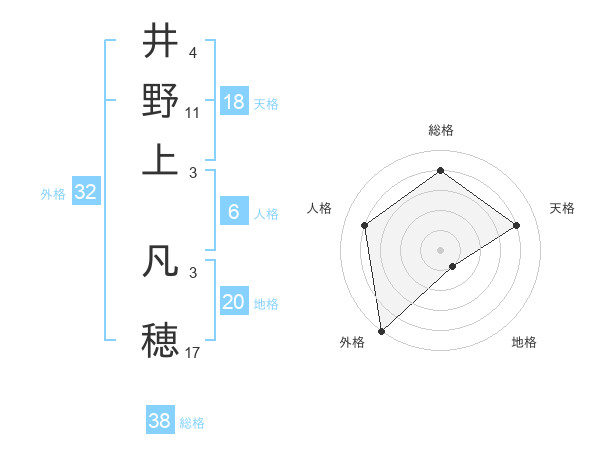 井野上 凡穂さんの総格は38画の4点!