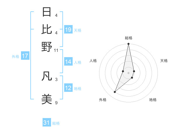 日比野 凡美さんを姓名の画数から五運を鑑定