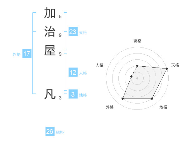 加治屋 凡さんの天格は23画の5点!