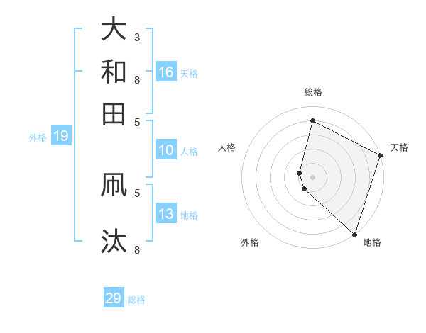 大和田 凧汰さんを姓名の画数から五運を鑑定