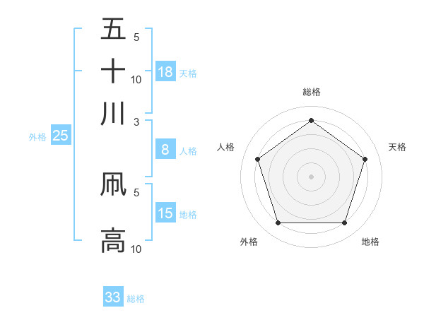 五十川 凧高さんを姓名の画数から五運を鑑定