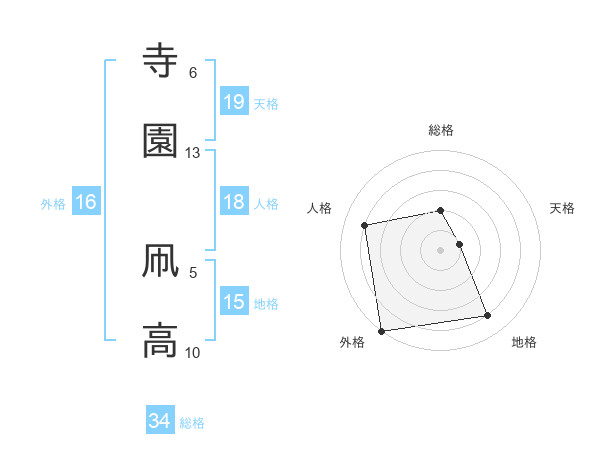 寺園 凧高さんの総格は34画の2点!