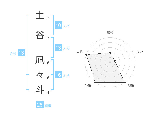 土谷 凪々斗さんを姓名の画数から五運を鑑定