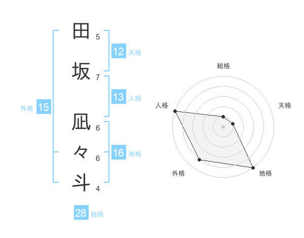 田坂 凪々斗さんを姓名の画数から五運を鑑定