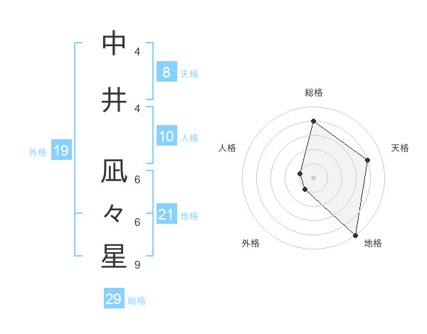 中井 凪々星さんを姓名の画数から五運を鑑定