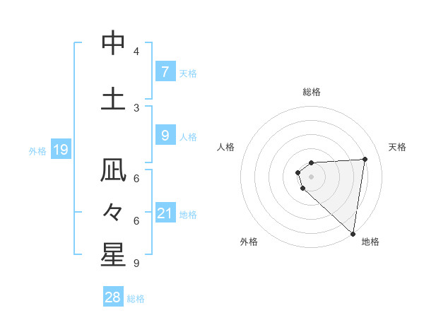 中土 凪々星さんを姓名の画数から五運を鑑定