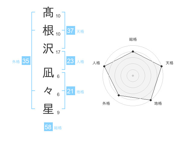 髙根沢 凪々星さんの総格は58画の4点!