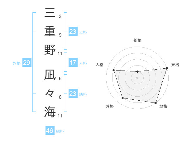 三重野 凪々海さんを姓名の画数から五運を鑑定