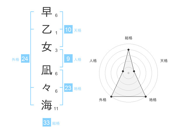 早乙女 凪々海さんの総格は33画の4点!