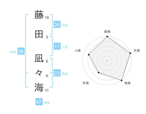 藤田 凪々海さんの天格は24画の5点!