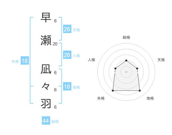 早瀬 凪々羽さんを姓名の画数から五運を鑑定
