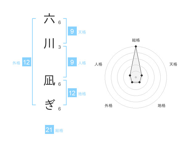 六川 凪ぎさんの外格は12画の1点!