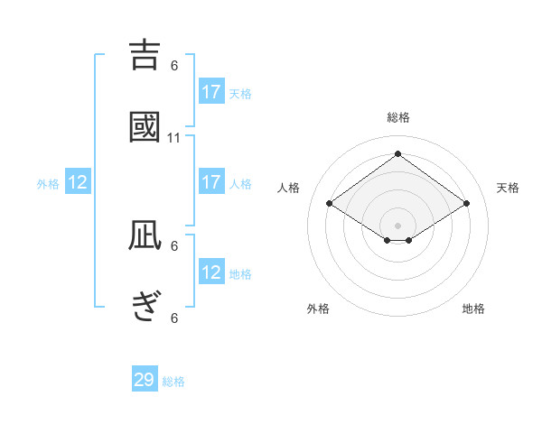 吉國 凪ぎさんの天格は17画の4点!