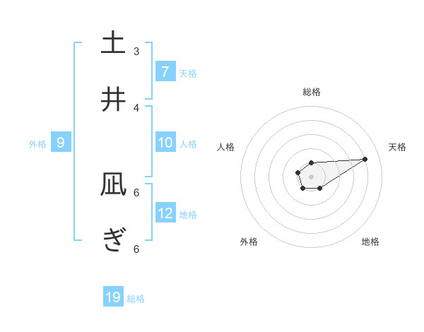 土井 凪ぎさんを姓名の画数から五運を鑑定