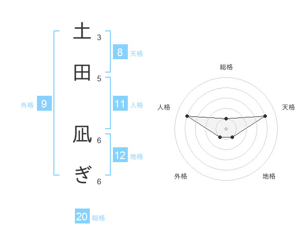 土田 凪ぎさんの総格は20画の1点