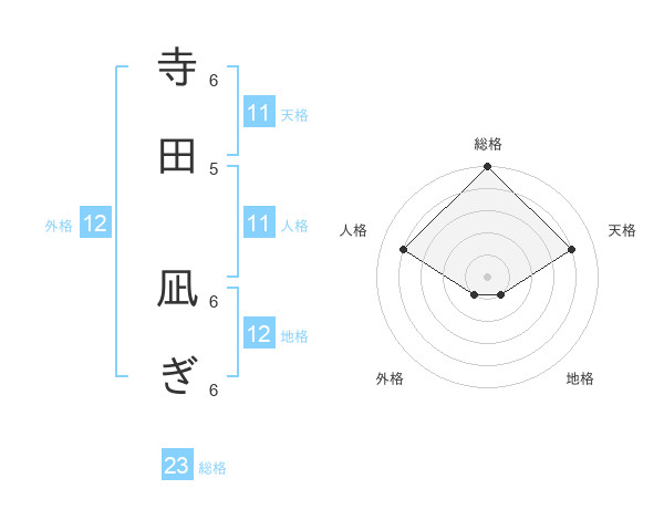 寺田 凪ぎさんを姓名の画数から五運を鑑定