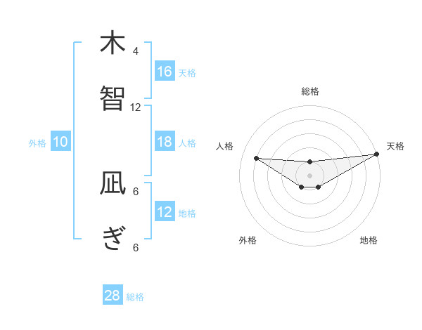 木智 凪ぎさんの天格は16画の5点!