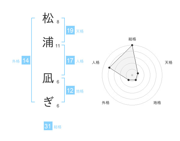 松浦 凪ぎさんを姓名の画数から五運を鑑定