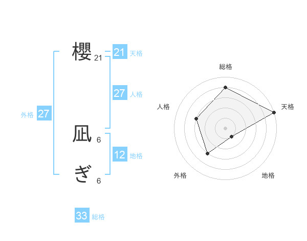 櫻 凪ぎさんの天格は21画の5点!