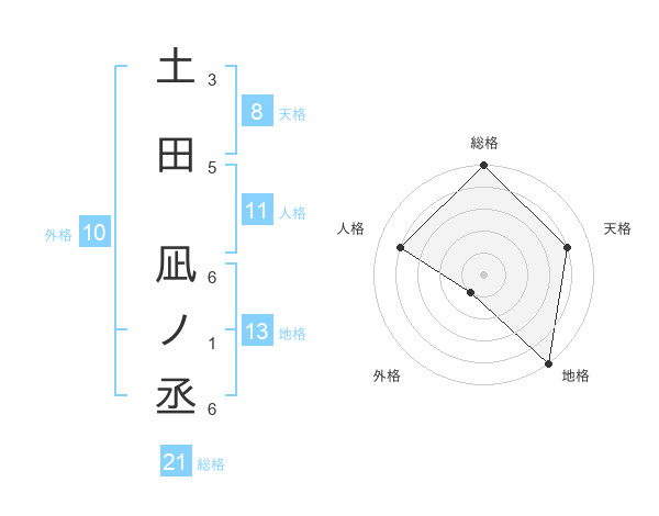 土田 凪ノ丞さんを姓名の画数から五運を鑑定