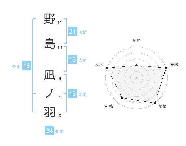 野島 凪ノ羽さんを姓名の画数から五運を鑑定