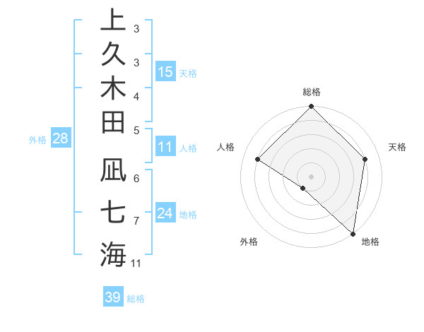 上久木田 凪七海さんを姓名の画数から五運を鑑定