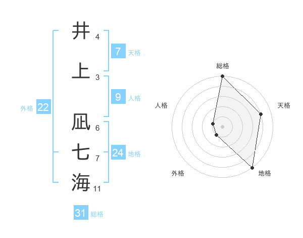 井上 凪七海さんを姓名の画数から五運を鑑定