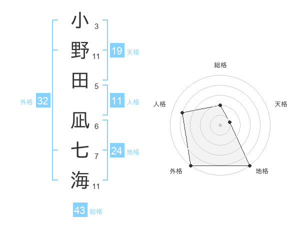 小野田 凪七海さんを姓名の画数から五運を鑑定