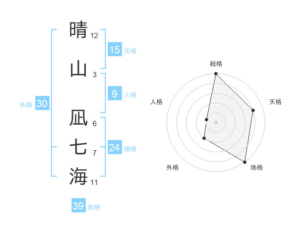 晴山 凪七海さんを姓名の画数から五運を鑑定